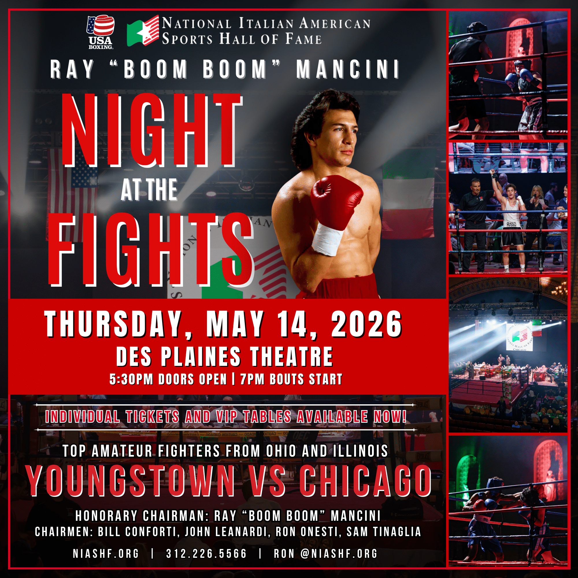 Always a sell out!!! Support the National Italian American Sports Hall of Fame and enjoy 10 bouts of LIVE boxing! The perfect sporting night out with food and drinks available for purchase. Tables of 10, VIP, main floor, and balcony seating available.