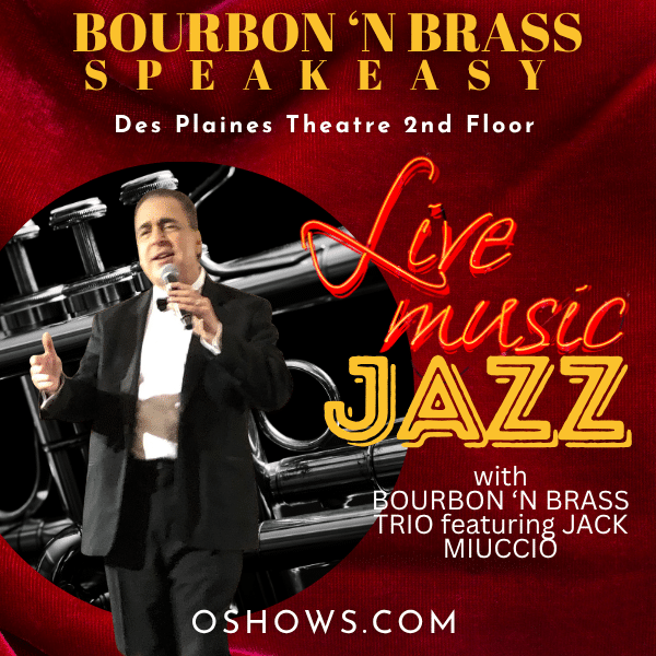 Join us in our intimate Bourbon 'N Brass Speakeasy, located on the 2nd floor of the Des Plaines Theatre, for an evening of Jazz with Jack Miuccio & The Bourbon 'N Brass Trio! Food and hand-crafted cocktails are available for purchase. Happy Hour pricing available all night ($5 Beer | $6 Wine and Call Level...