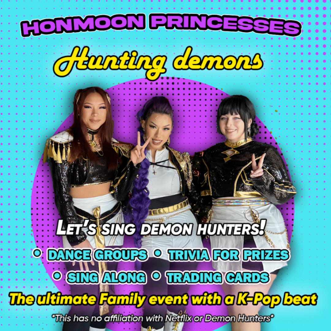 Gather your friends and family for a magical night at Honmoon Princesses: A Tribute to Demon Hunters! Inspired by the colorful world and high-energy fun of KPop Demon Hunters, this all-ages event is your chance to sing, dance, and celebrate together. Costumes are encouraged. Let’s party like true demon hunters! Buy Now