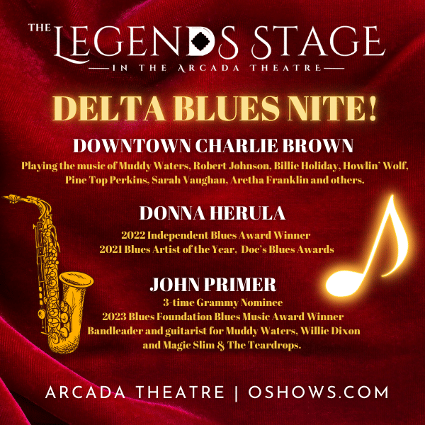 LEGENDS STAGE AT THE ARCADA THEATRE: Delta Blues Nite with Downtown Charlie Brown, Donna Herula, and John Primer
