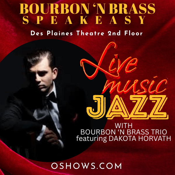 Join us in our intimate Bourbon 'N Brass Speakeasy, located on the 2nd floor of the Des Plaines Theatre, for an evening of Jazz with the Bourbon 'N Brass Trio...