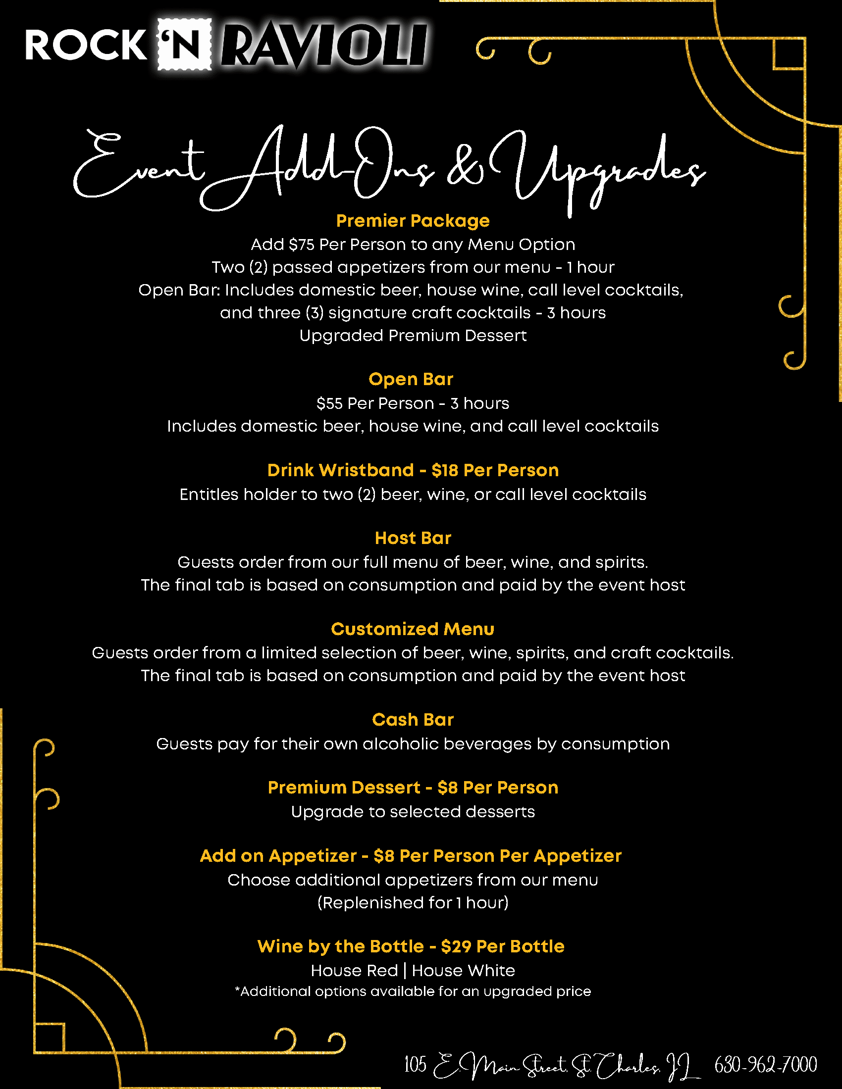 St. Charles, IL Rock ‘N Ravioli Host a party or event in our Rock ‘N Ravioli Restaurant! Serving authentic Italian Cuisine in a very unique Rock ‘N Roll Setting! Capacity: 120 people Reserve your space today! Rock ‘N Ravoili Catering Menus CONTACT AN OSHOWS EVENT PLANNER First NameLast NameEmail PhoneEvent Date MM slash DD slash YYYY Number of GuestsPlease enter a number from 1 to 900.Event Venue(s) Message