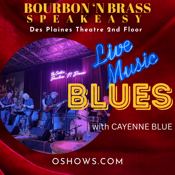 Join us in our intimate Bourbon 'N Brass Speakeasy, located on the 2nd floor of the Des Plaines Theatre, for an evening of Blues with Cayenne Blue! Food and hand-crafted cocktails are available for purchase. There is a $10 entertainment fee which helps us pay the performer. No RSVP required. Seating is first-come, first-seated. Doors...